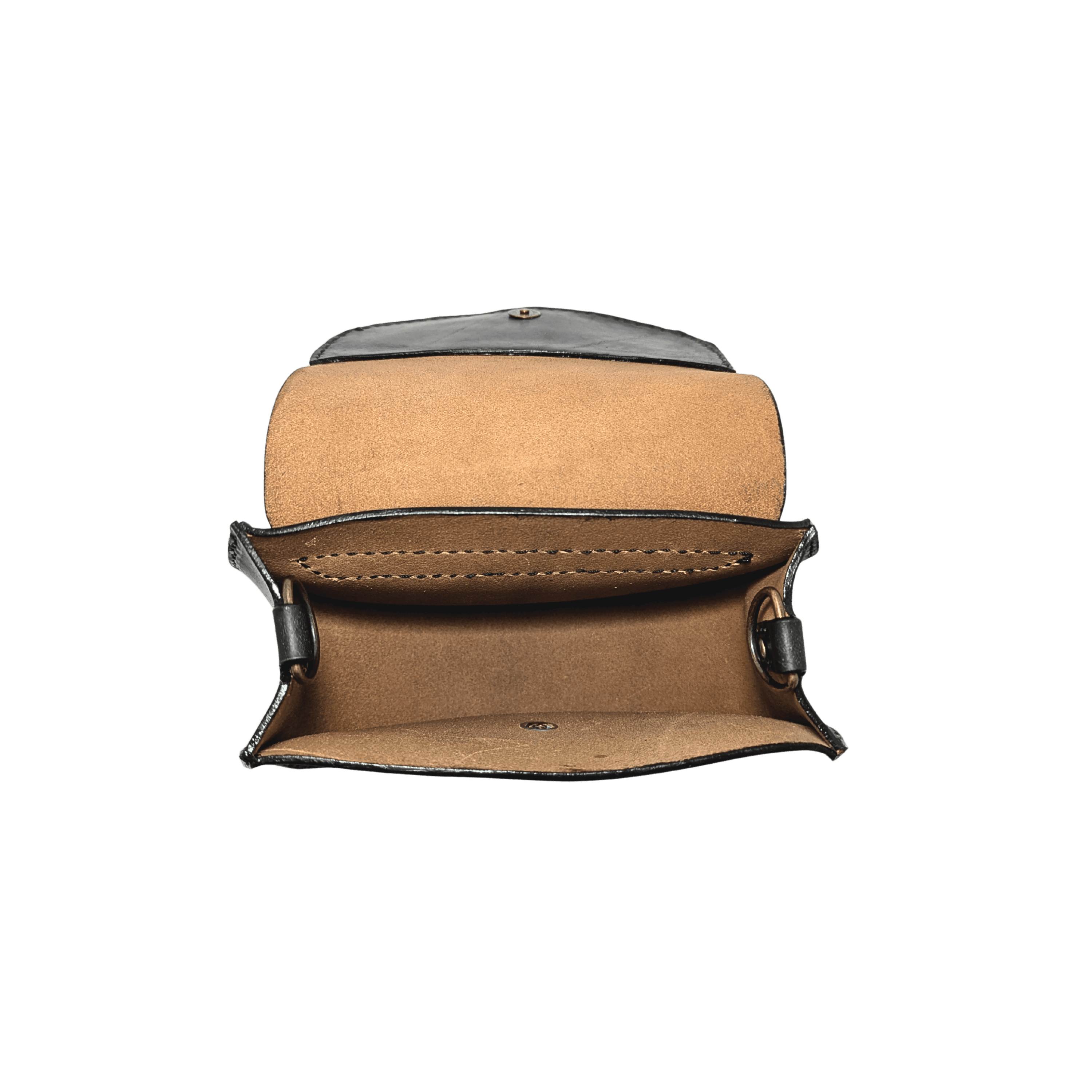 Each piece is fully handmade and hand-stitched, emphasizing craftsmanship and longevity. The interior is intentionally unlined, revealing the warm natural tone of the leather’s underside and showcasing the authenticity of the material.
