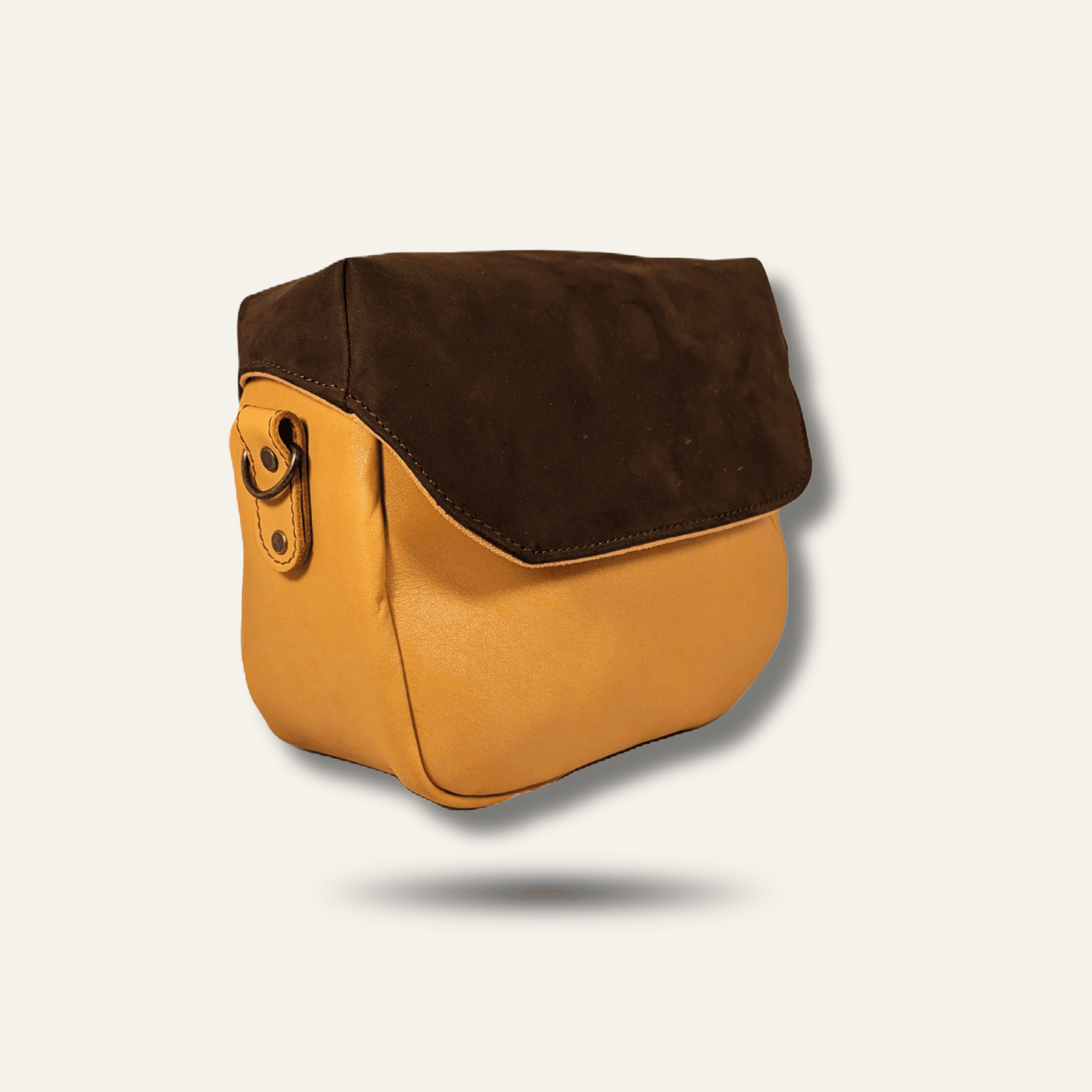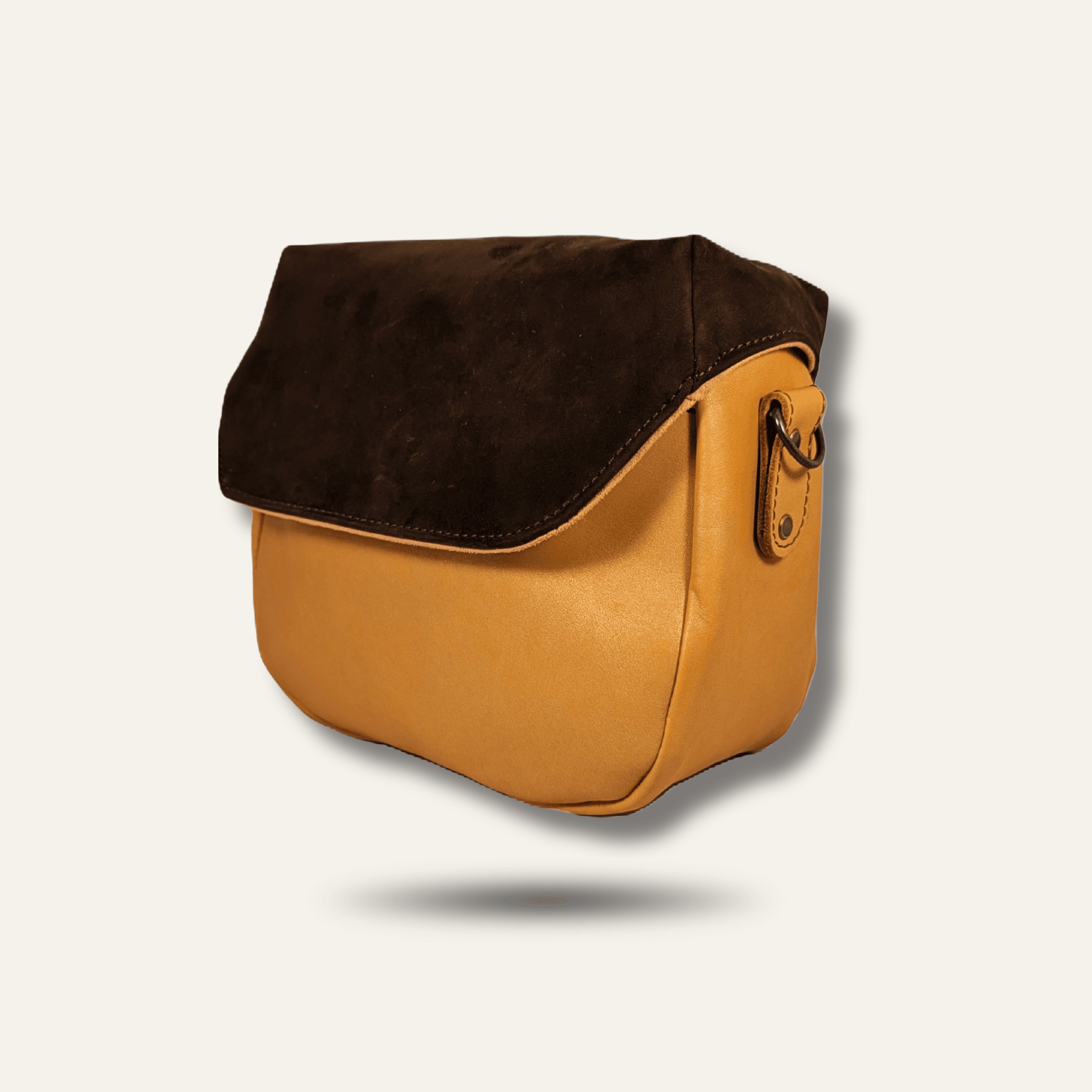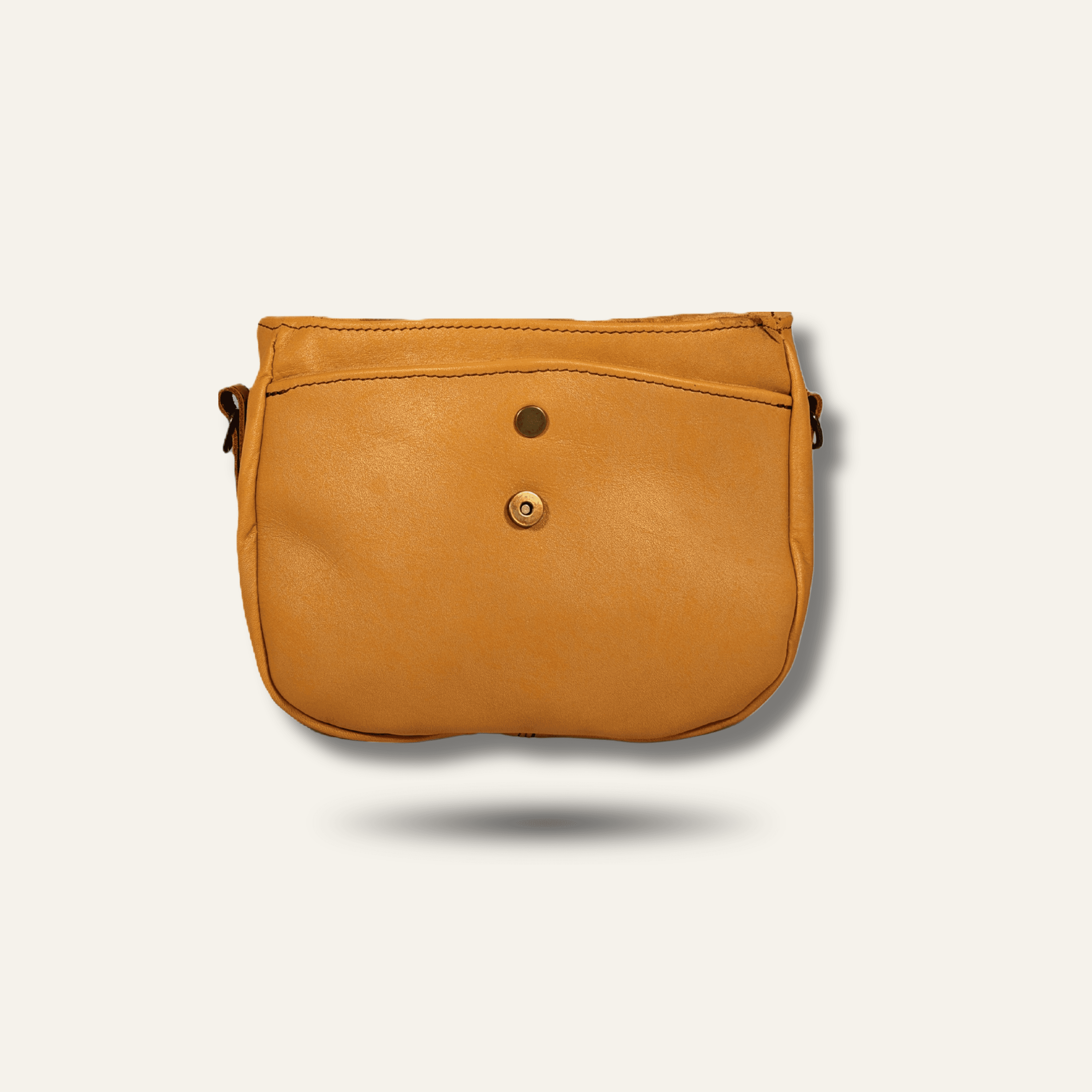 - Hardware: Antique brass (D-rings, snap buttons, magnetic closure, zipper)